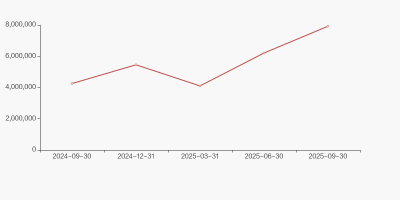 截至2025年9月30日,公司最新总股本为6.72亿股,其中流通股本为4.22亿股。户均持有流通股数量由上期的1.54万股上升至1.92万股,户均流通市值33.28万元。