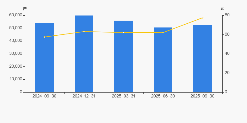 截至2025年9月30日,公司最新总股本为1.93亿股,其中流通股本为1.71亿股。户均持有流通股数量由上期的3387股下降至3268股,户均流通市值25.33万元。