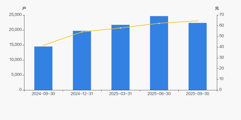 2024年9月30日至今,公司股东户数显著大幅增长,区间涨幅达54.25%。2024年9月30日至2025年9月30日区间股价上涨54.90%。