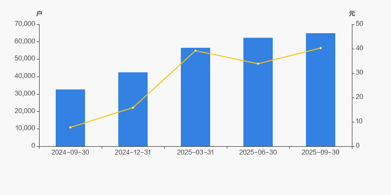 2024年9月30日至今,公司股东户数显著大幅增长,区间涨幅达99.04%。2024年9月30日至2025年9月30日区间股价上涨420.54%。