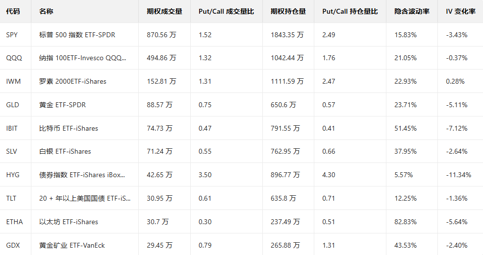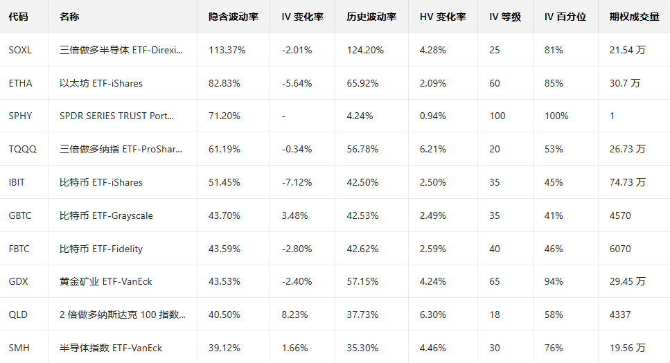 三、美股ETF期权成交榜美股ETF期权成交量排行榜前十
