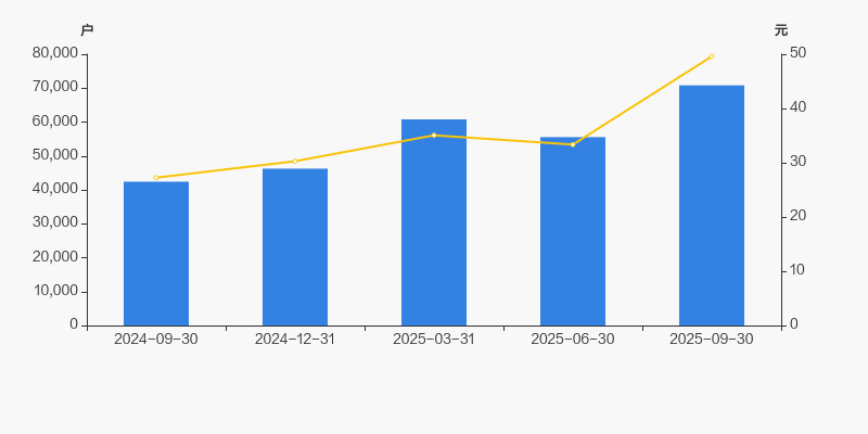 2024年9月30日至今,公司股东户数显著大幅增长,区间涨幅达67.01%。2024年9月30日至2025年9月30日区间股价上涨82.00%。