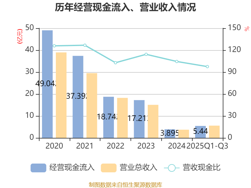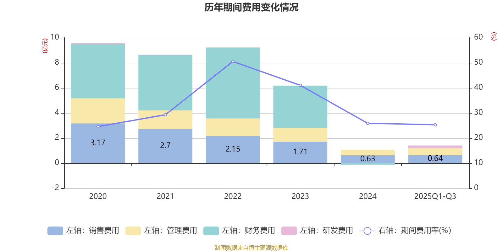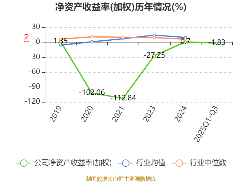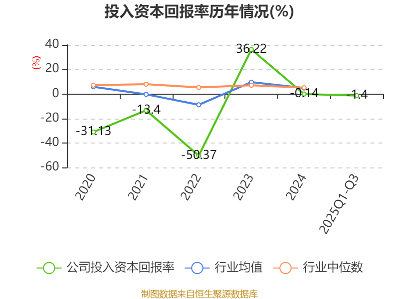 盈利能力方面, 2025年前三季度公司加权平均净资产收益率为-1.83%,同比下降1.86个百分点。公司2025年前三季度投入资本回报率为-1.4%,较上年同期下降0.88个百分点。