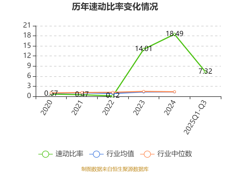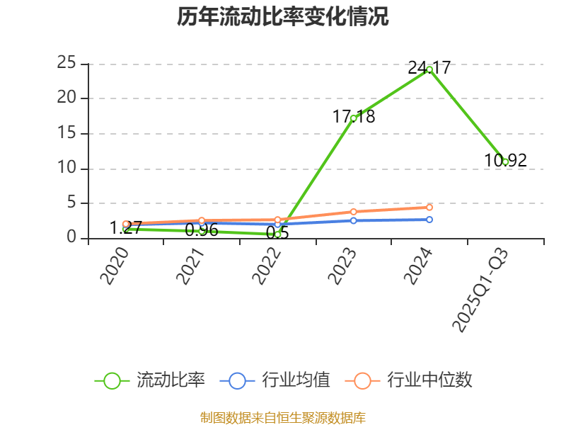 2025年前三季度,公司流动比率为10.92,速动比率为7.32。