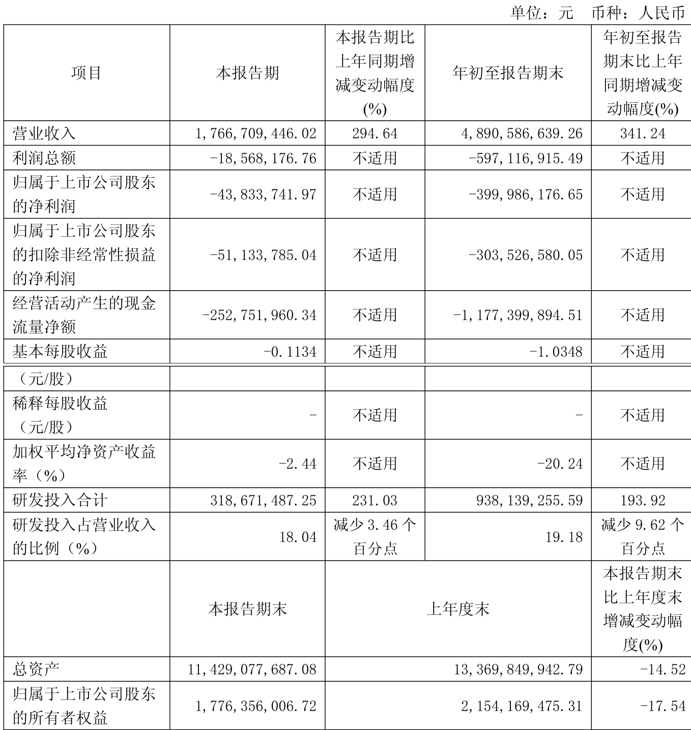 中证智能财讯亚信安全(688225)10月29日披露2025年第三季度报告。前三季度公司实现营业总收入48.91亿元,同比增长341.24%;归母净利润亏损4亿元,上年同期亏损2.08亿元;扣非净利润亏损3.04亿元,上年同期亏损2.14亿元;经营活动产生的现金流量净额为-11.77亿元,上年同期为-3.88亿元;报告期内,亚信安全基本每股收益为-1.0348元,加权平均净资产收益率为-20.24%。