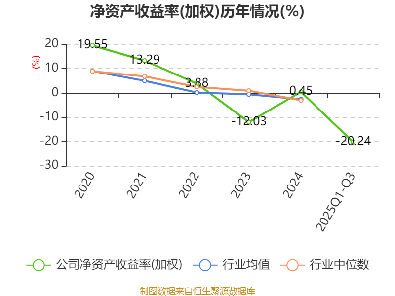 盈利能力方面, 2025年前三季度公司加权平均净资产收益率为-20.24%,同比下降9.98个百分点。公司2025年前三季度投入资本回报率为-7.56%,较上年同期上升0.97个百分点。