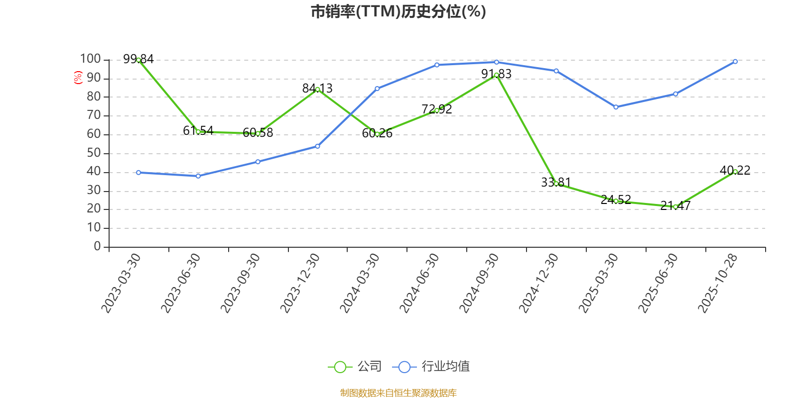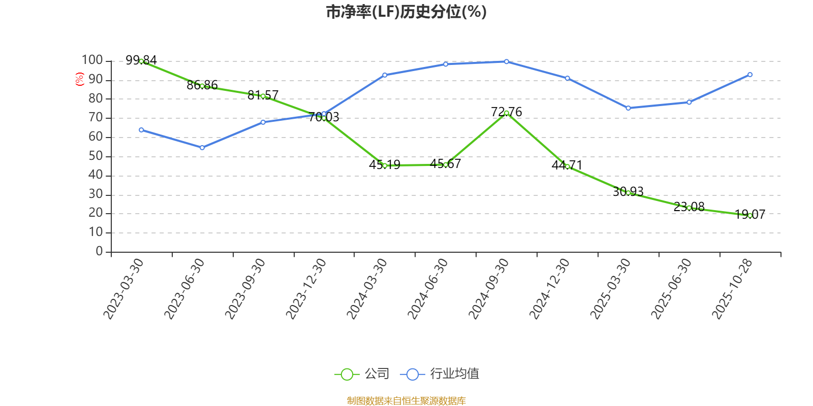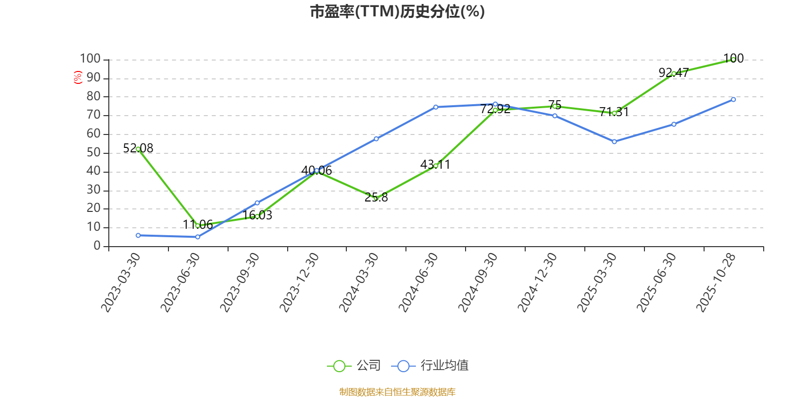 市盈率、市净率为负时,不显示当期分位数,会导致折线图中断。