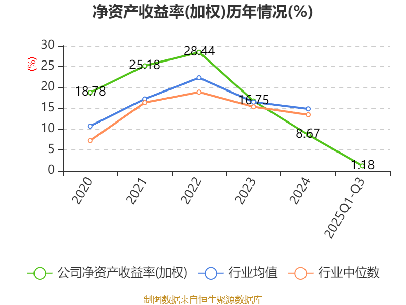 盈利能力方面, 2025年前三季度公司加权平均净资产收益率为1.18%,同比下降6.65个百分点。公司2025年前三季度投入资本回报率为1.37%,较上年同期下降4.29个百分点。