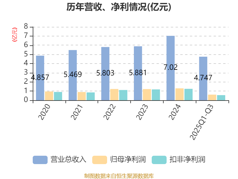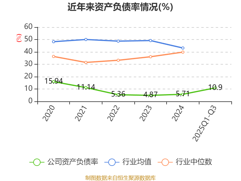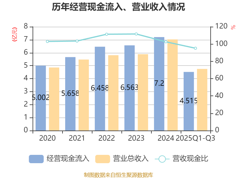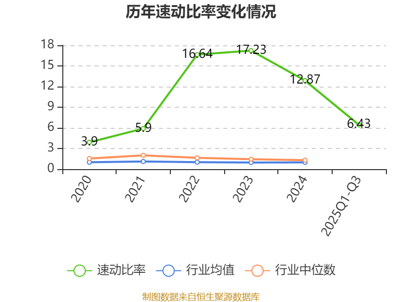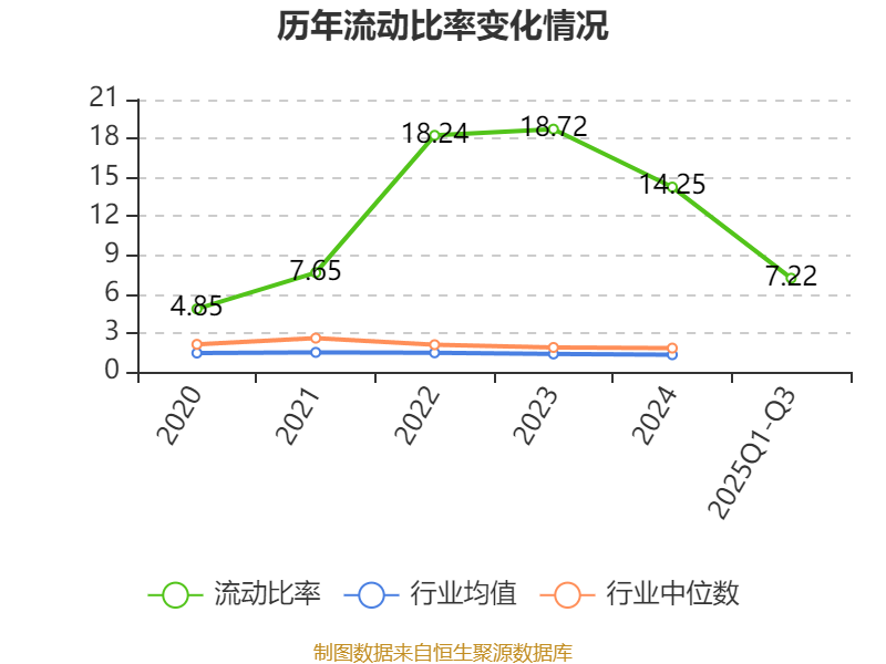 2025年前三季度,公司流动比率为7.22,速动比率为6.43。