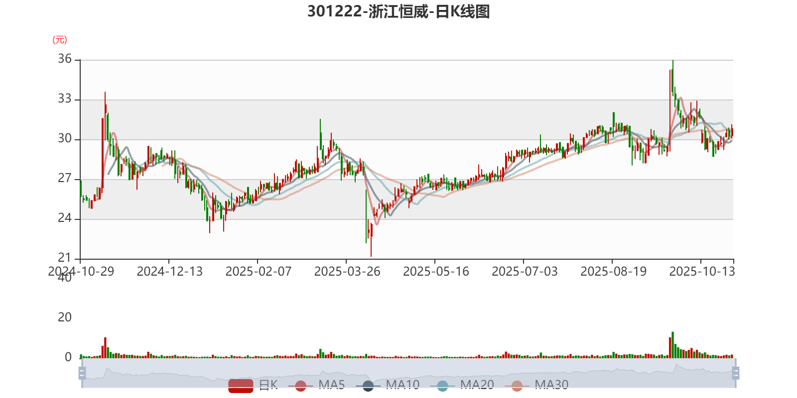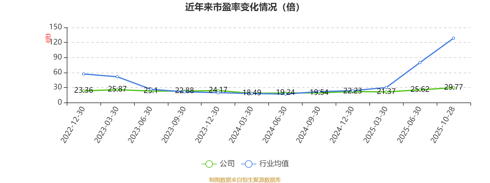 以10月28日收盘价计算,浙江恒威目前市盈率(TTM)约为29.77倍,市净率(LF)约2.15倍,市销率(TTM)约4.67倍。