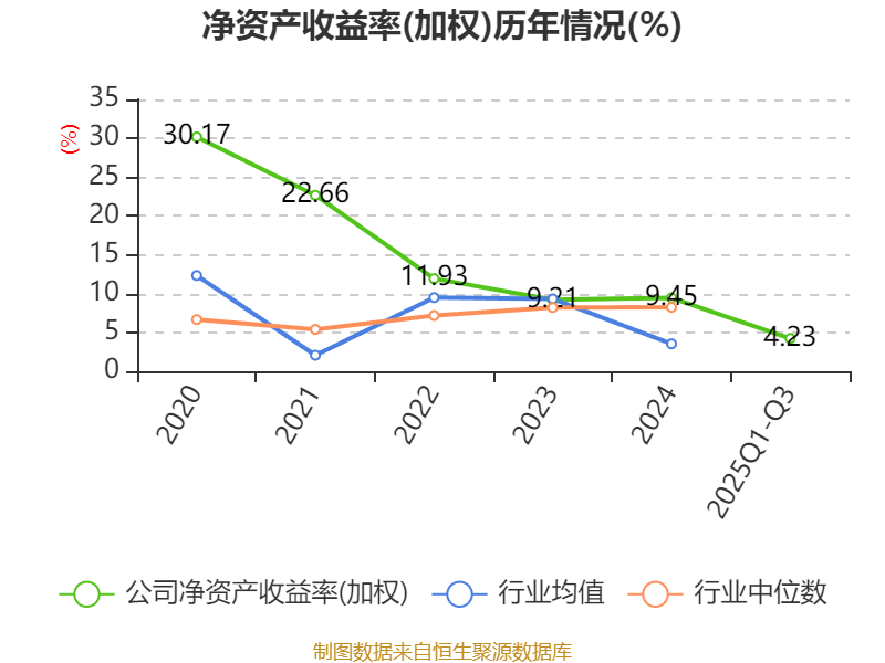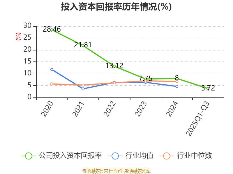 盈利能力方面, 2025年前三季度公司加权平均净资产收益率为4.23%,同比下降2.11个百分点。公司2025年前三季度投入资本回报率为3.72%,较上年同期下降2.06个百分点。