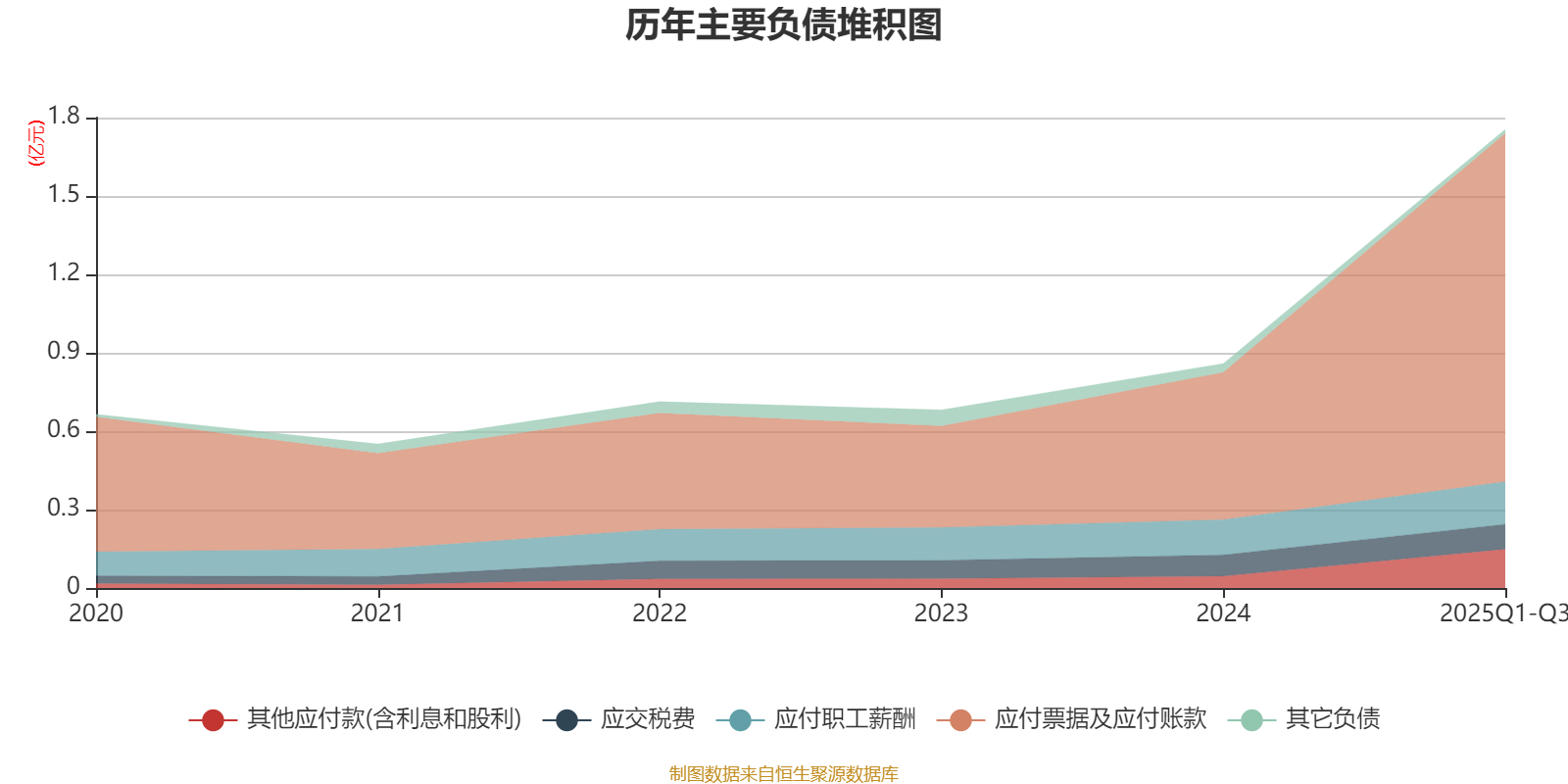 负债重大变化方面,截至2025年三季度末,公司应付票据及应付账款较上年末增加136.53%,占公司总资产比重上升4.54个百分点;其他应付款(含利息和股利)较上年末增加229.33%,占公司总资产比重上升0.62个百分点;应付职工薪酬较上年末增加20.3%,占公司总资产比重上升0.11个百分点;合同负债较上年末减少71.18%,占公司总资产比重下降0.08个百分点。