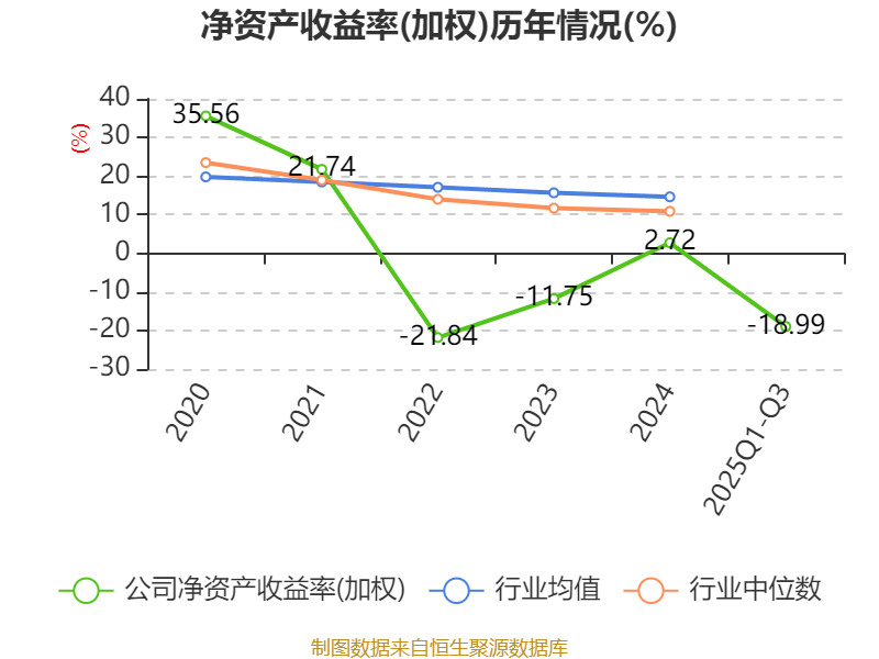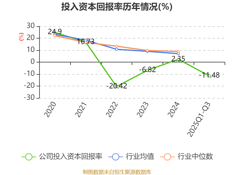 盈利能力方面, 2025年前三季度公司加权平均净资产收益率为-18.99%,同比下降22.17个百分点。公司2025年前三季度投入资本回报率为-11.48%,较上年同期下降14.2个百分点。