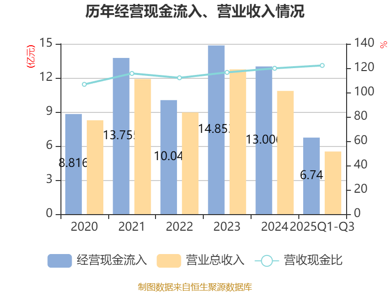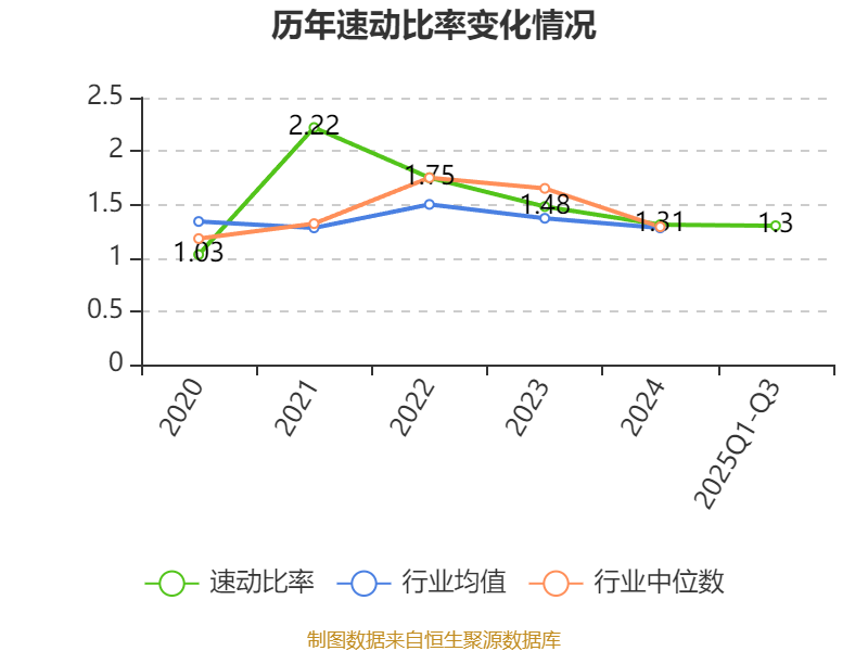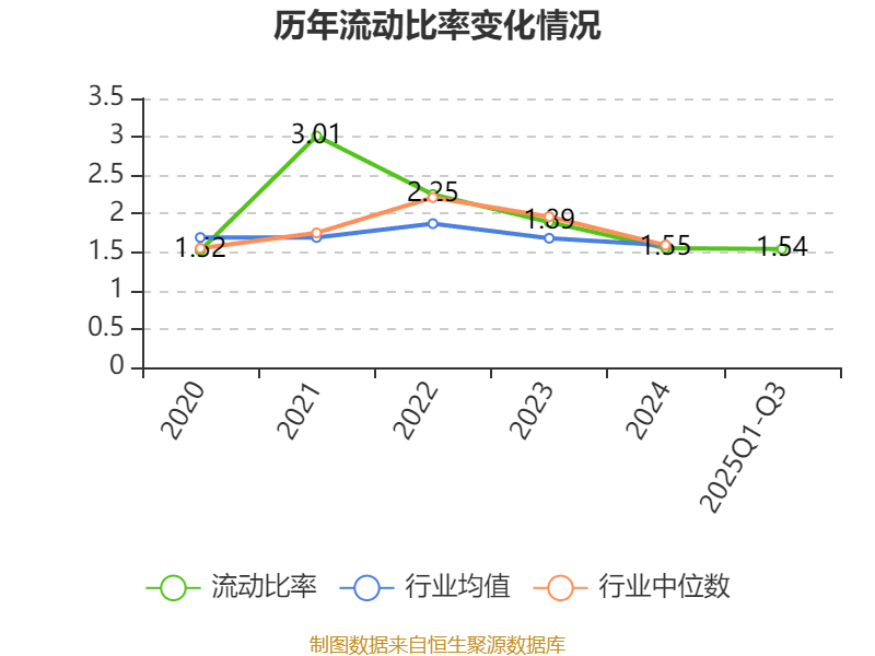 2025年前三季度,公司流动比率为1.54,速动比率为1.3。