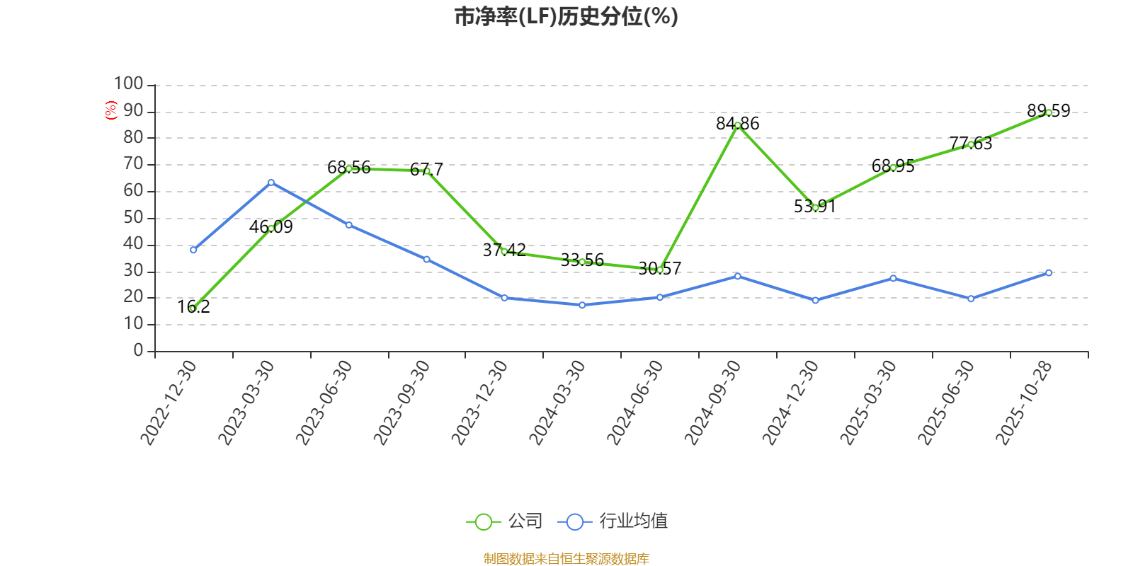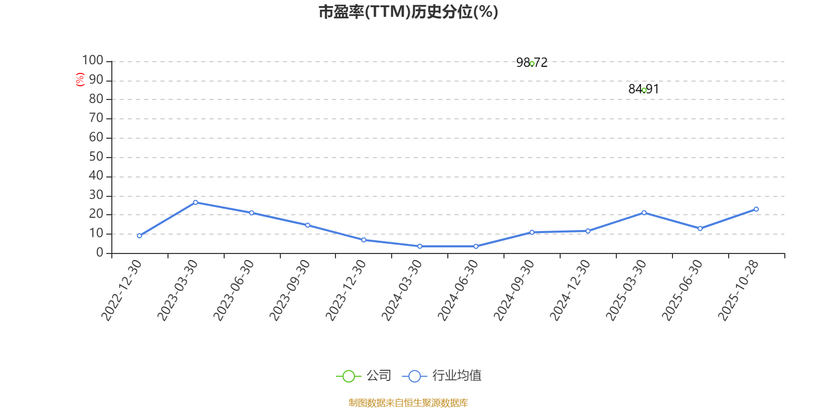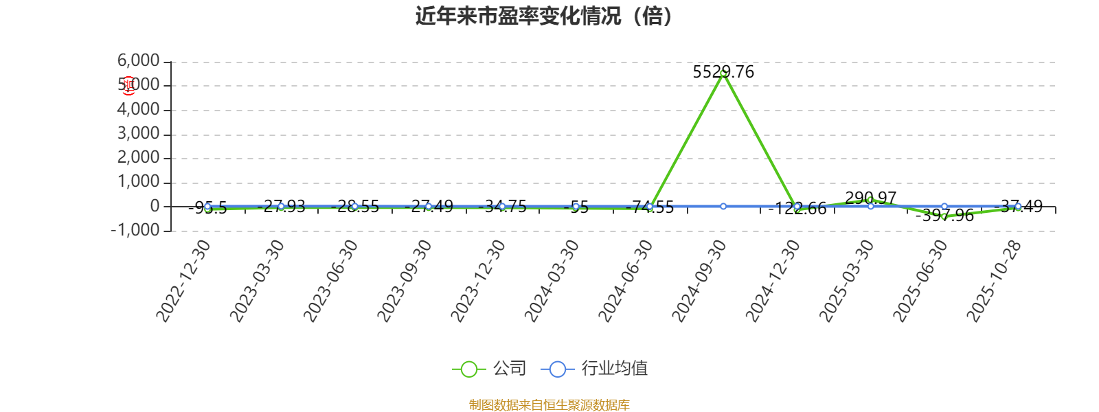 市盈率、市净率为负时,不显示当期分位数,会导致折线图中断。