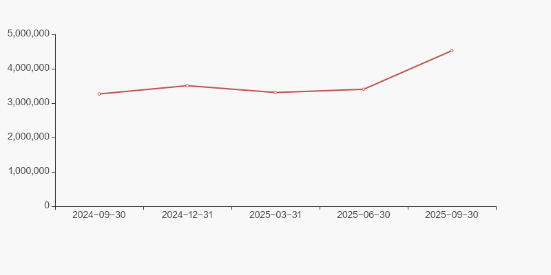 截至2025年9月30日,公司最新总股本为8.4亿股,其中流通股本为3.29亿股。户均持有流通股数量由上期的1.56万股下降至1.55万股,户均流通市值30.82万元。