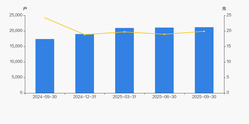 自2024年9月30日以来,公司股东户数连续4期上涨,截至目前增幅为21.96%。2024年9月30日至2025年9月30日区间股价下降18.02%。
