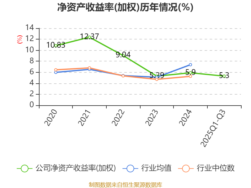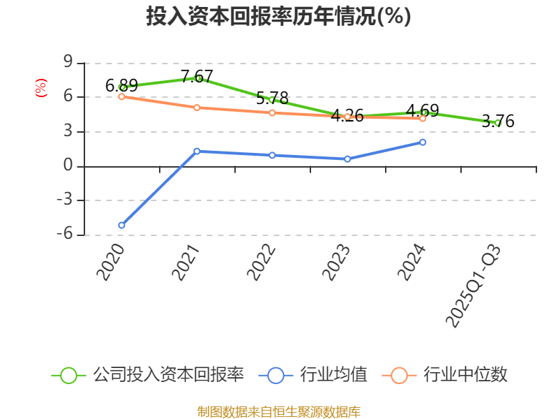 盈利能力方面, 2025年前三季度公司加权平均净资产收益率为5.3%,同比上升0.98个百分点。公司2025年前三季度投入资本回报率为3.76%,较上年同期上升0.35个百分点。