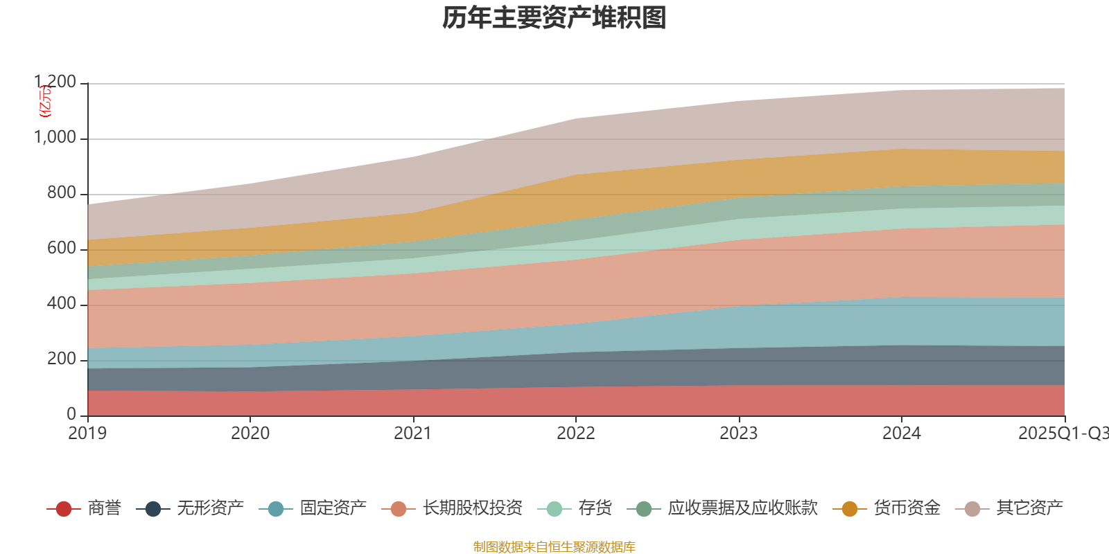 资产重大变化方面,截至2025年三季度末,公司货币资金较上年末减少15.13%,占公司总资产比重下降1.8个百分点;长期股权投资较上年末增加6.82%,占公司总资产比重上升1.31个百分点;交易性金融资产合计较上年末减少21.87%,占公司总资产比重下降0.49个百分点;开发支出较上年末增加12.17%,占公司总资产比重上升0.48个百分点。