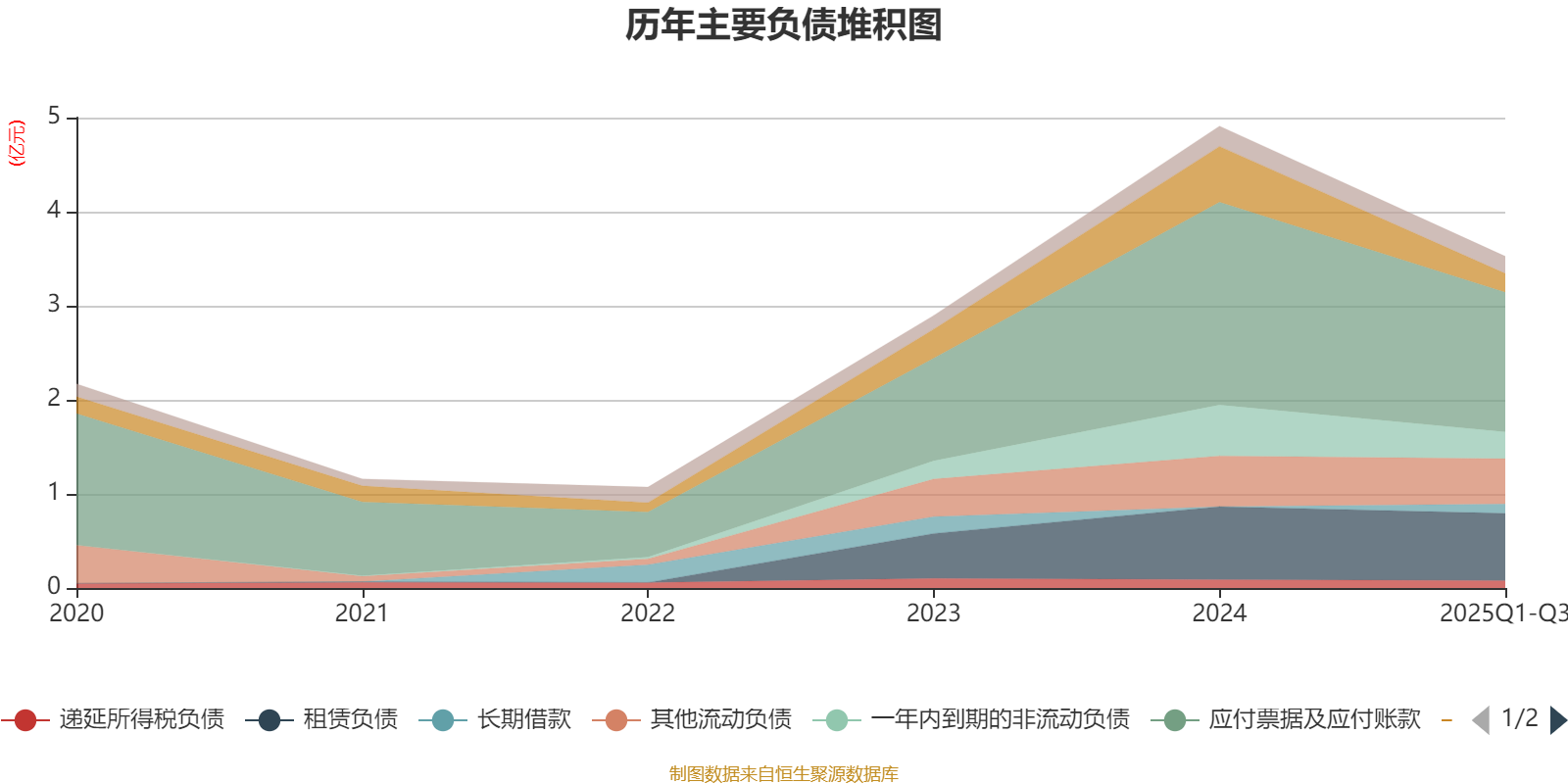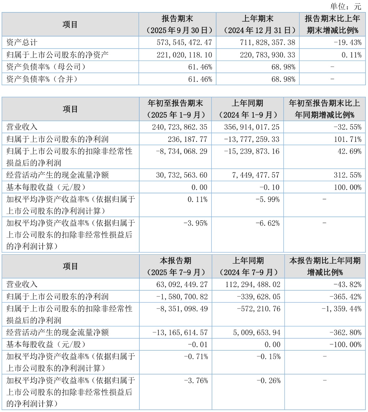 负债重大变化方面,截至2025年三季度末,公司短期借款较上年末减少66.23%,占公司总资产比重下降4.84个百分点;应付票据及应付账款较上年末减少31.09%,占公司总资产比重下降4.38个百分点;一年内到期的非流动负债较上年末减少47.6%,占公司总资产比重下降2.66个百分点;长期借款占公司总资产的1.74%,上年末为0。