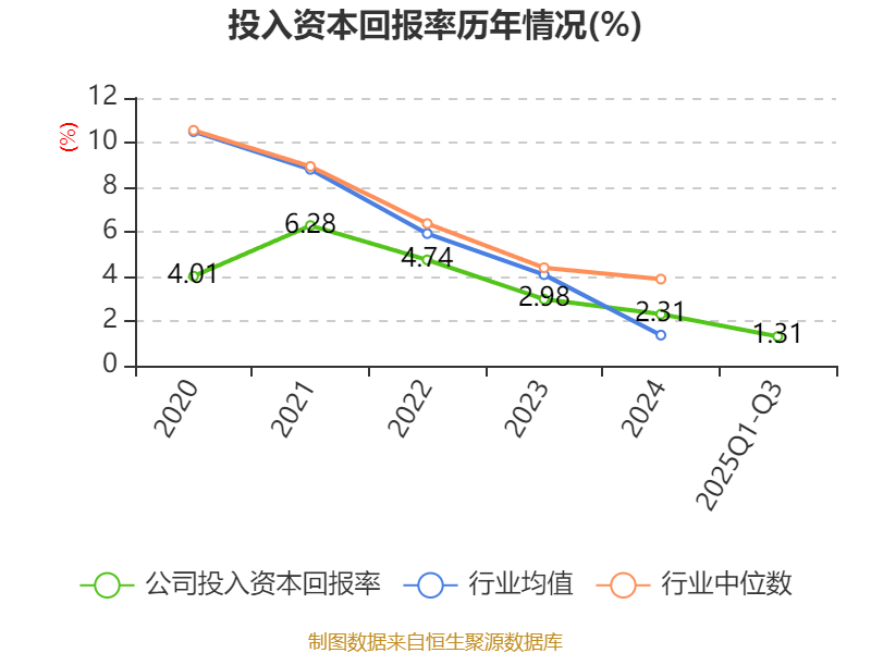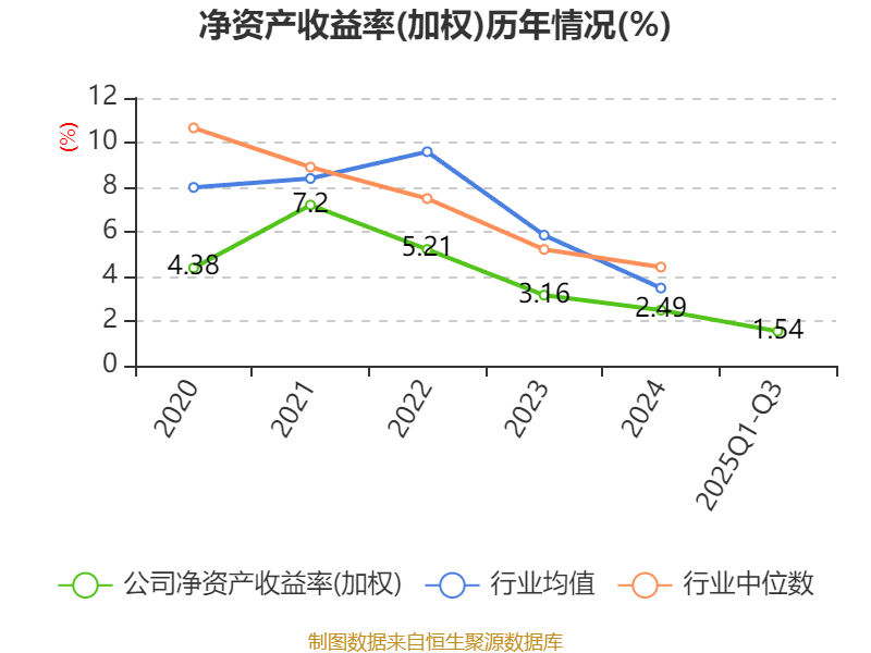 盈利能力方面, 2025年前三季度公司加权平均净资产收益率为1.54%,同比下降0.73个百分点。公司2025年前三季度投入资本回报率为1.31%,较上年同期下降0.92个百分点。