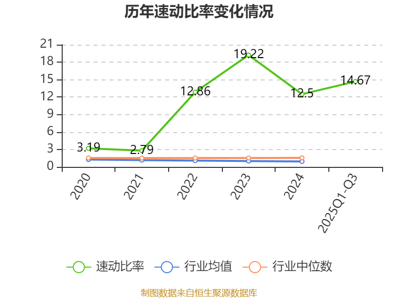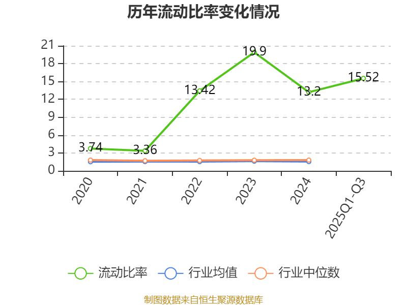 2025年前三季度,公司流动比率为15.52,速动比率为14.67。