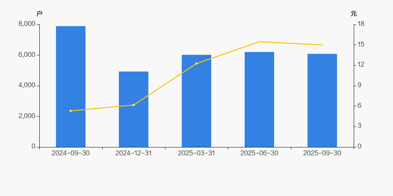 截至2025年9月30日,公司最新总股本为9590万股,其中流通股本为6240.75万股。户均持有流通股数量由上期的7186股上升至1.03万股,户均流通市值15.38万元。