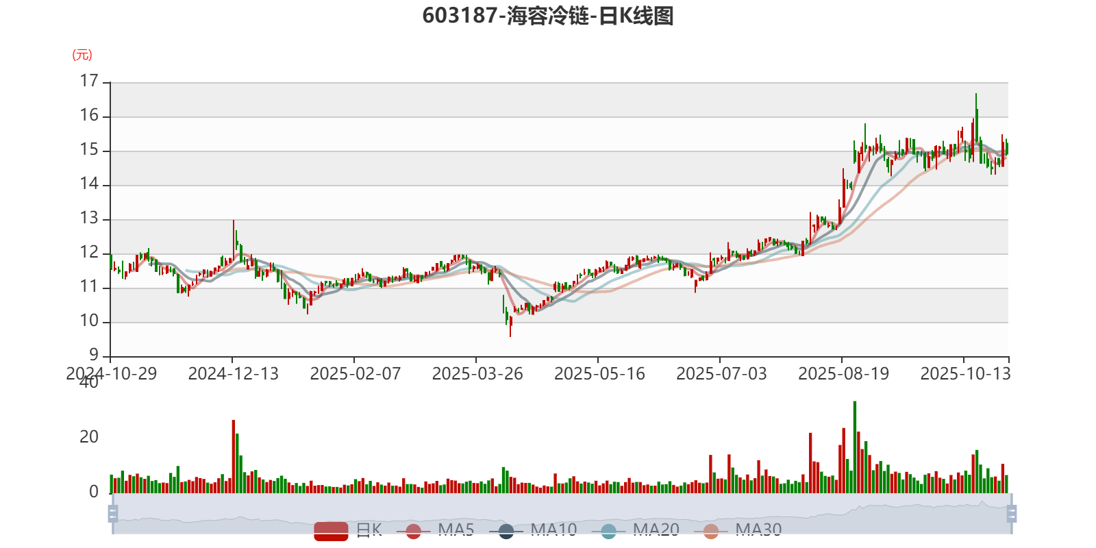以10月28日收盘价计算,海容冷链目前市盈率(TTM)约为15.07倍,市净率(LF)约1.36倍,市销率(TTM)约1.83倍。