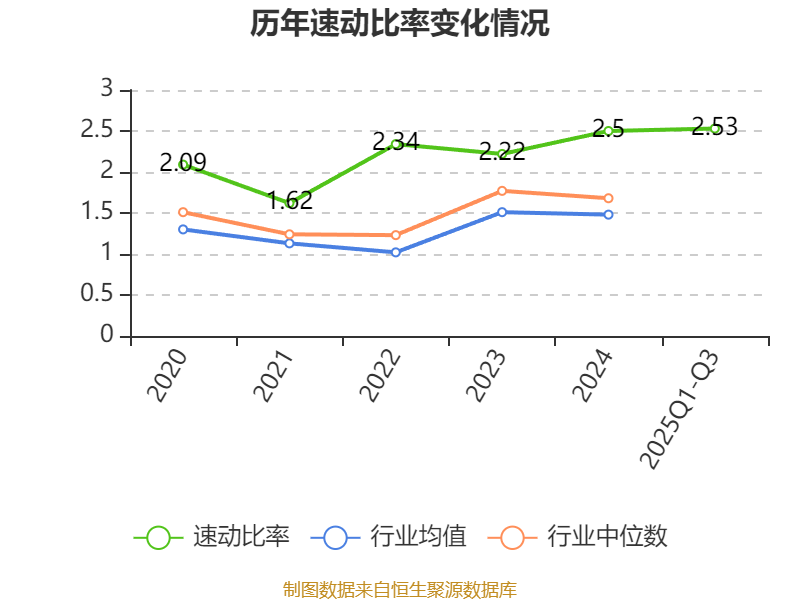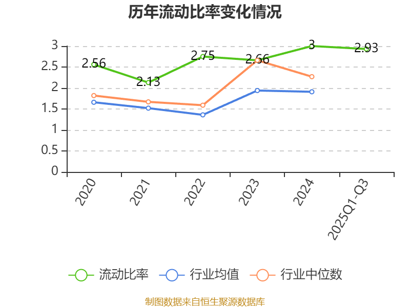 2025年前三季度,公司流动比率为2.93,速动比率为2.53。