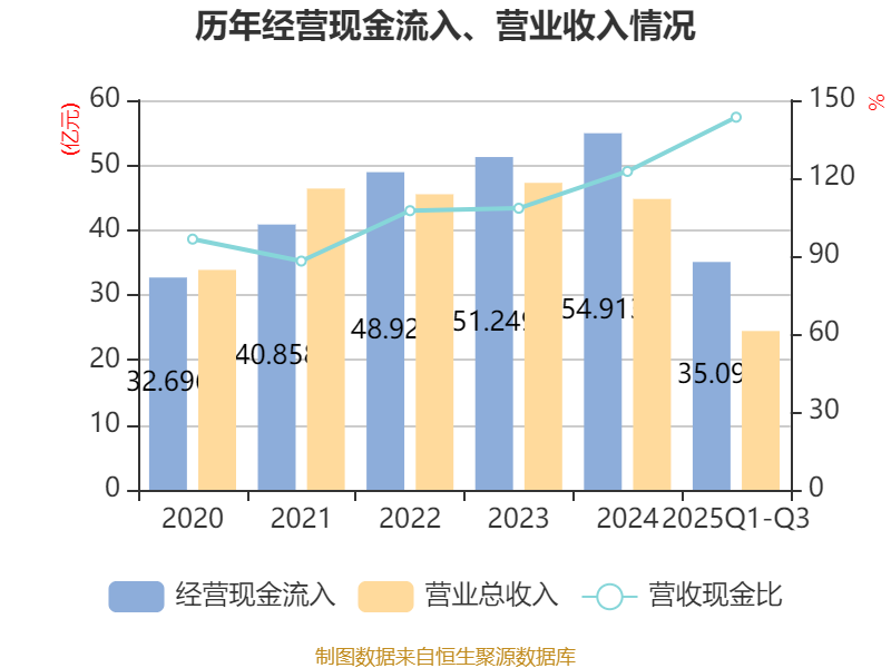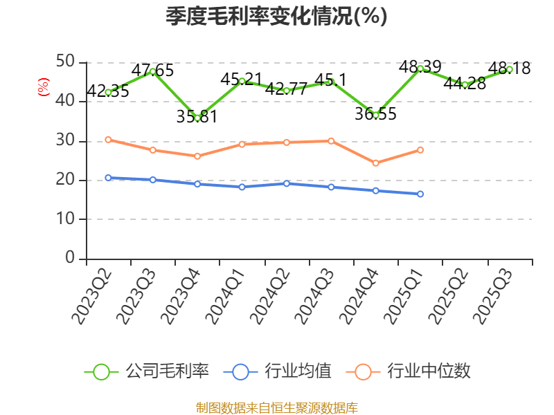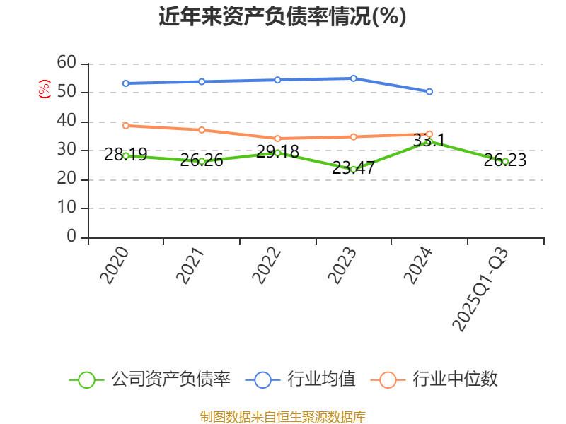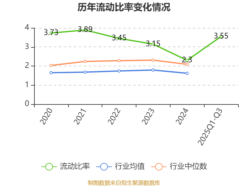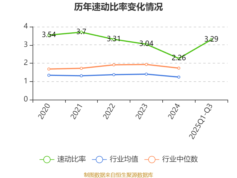 2025年前三季度,公司流动比率为3.55,速动比率为3.29。