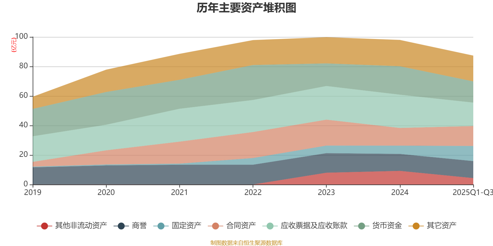 资产重大变化方面,截至2025年三季度末,公司固定资产较上年末增加82.59%,占公司总资产比重上升6.02个百分点;应收票据及应收账款较上年末减少29.5%,占公司总资产比重下降4.82个百分点;在建工程合计较上年末减少96.93%,占公司总资产比重下降4.56个百分点;其他非流动资产较上年末减少53.09%,占公司总资产比重下降4.45个百分点。