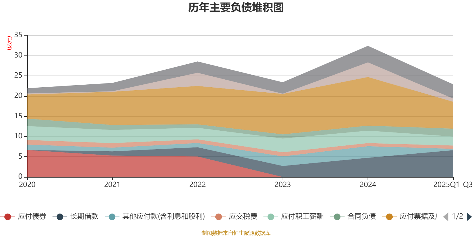 负债重大变化方面,截至2025年三季度末,公司应付票据及应付账款较上年末减少44.68%,占公司总资产比重下降4.66个百分点;短期借款较上年末减少78.33%,占公司总资产比重下降2.8个百分点;长期借款较上年末增加39.55%,占公司总资产比重上升2.73个百分点;其他应付款(含利息和股利)较上年末减少88.22%,占公司总资产比重下降2.53个百分点。