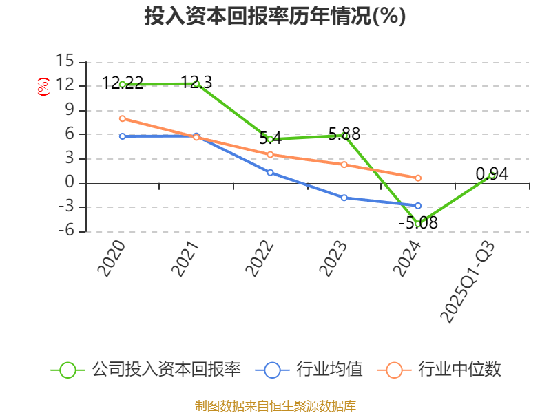 盈利能力方面, 2025年前三季度公司加权平均净资产收益率为1.54%,同比下降0.57个百分点。公司2025年前三季度投入资本回报率为0.94%,较上年同期下降0.1个百分点。