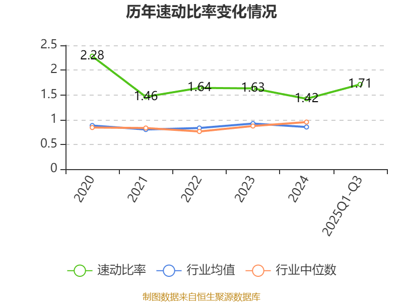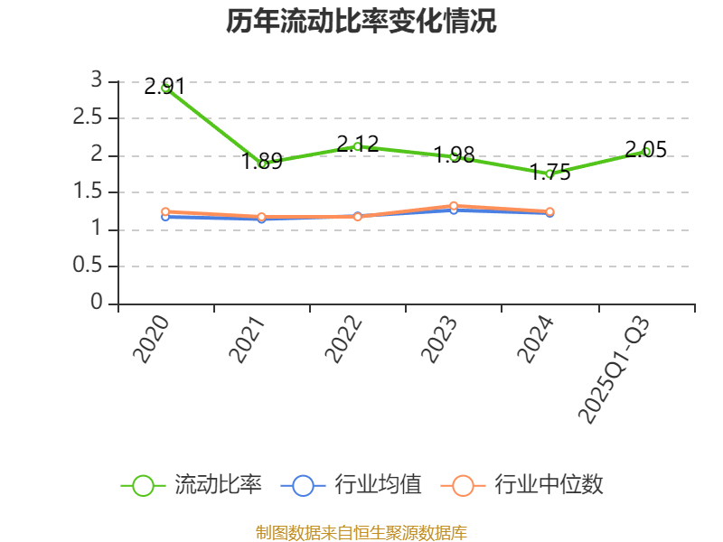 2025年前三季度,公司流动比率为2.05,速动比率为1.71。
