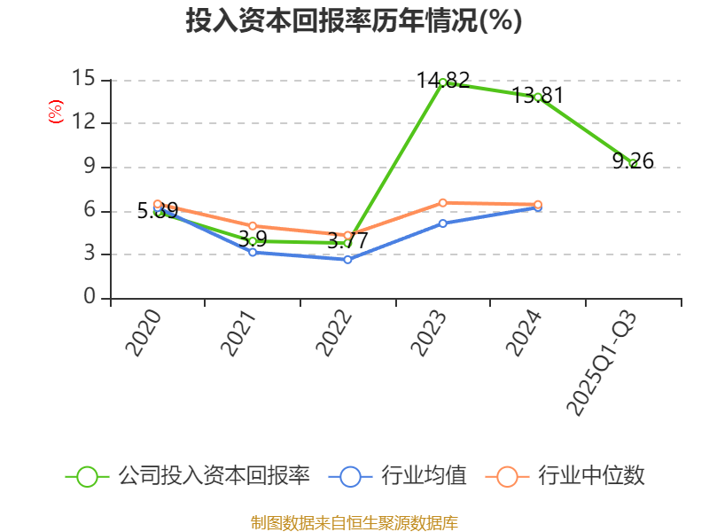 盈利能力方面, 2025年前三季度公司加权平均净资产收益率为10.33%,同比下降2.13个百分点。公司2025年前三季度投入资本回报率为9.26%,较上年同期下降1.23个百分点。