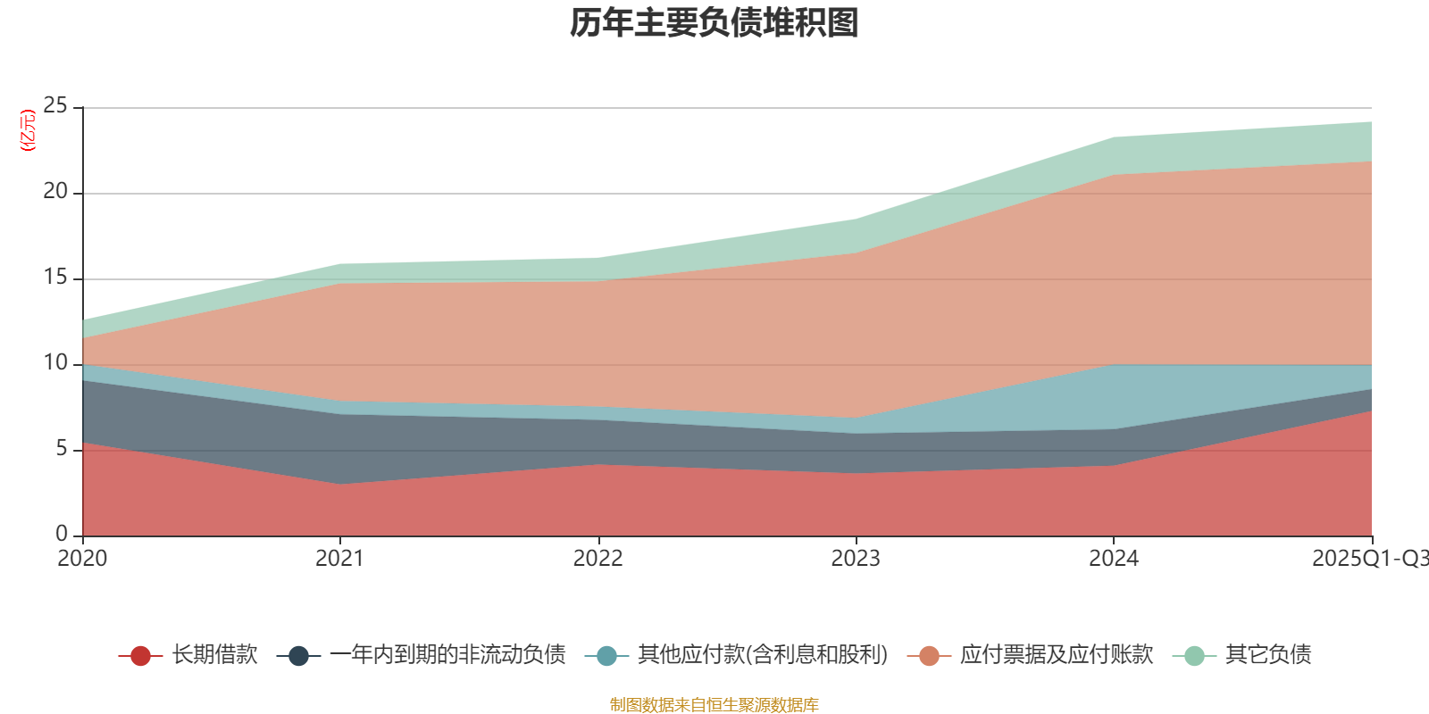 负债重大变化方面,截至2025年三季度末,公司长期借款较上年末增加78.13%,占公司总资产比重上升6.84个百分点;其他应付款(含利息和股利)较上年末减少62.76%,占公司总资产比重下降5.57个百分点;一年内到期的非流动负债较上年末减少39.99%,占公司总资产比重下降2.04个百分点;应付票据及应付账款较上年末增加7.44%,占公司总资产比重上升1.07个百分点。
