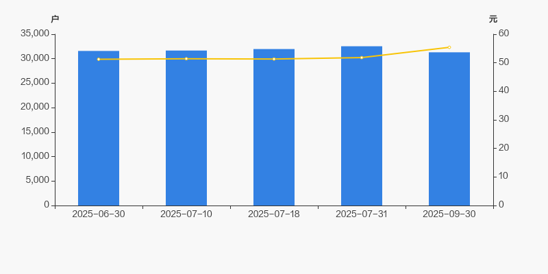 截至2025年9月30日,公司最新总股本为4.82亿股,且均为流通股。户均持有流通股数量由上期的1.48万股上升至1.54万股,户均流通市值85.26万元。