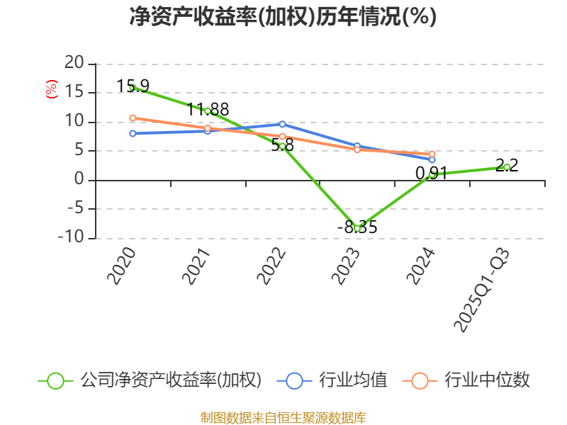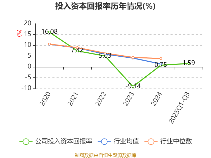 盈利能力方面, 2025年前三季度公司加权平均净资产收益率为2.2%,同比上升3.06个百分点。公司2025年前三季度投入资本回报率为1.59%,较上年同期上升1.84个百分点。