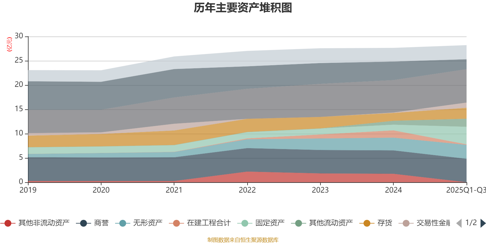 资产重大变化方面,截至2025年三季度末,公司固定资产较上年末增加209.23%,占公司总资产比重上升8.6个百分点;货币资金较上年末减少46.5%,占公司总资产比重下降6.53个百分点;其他非流动资产较上年末减少100%,占公司总资产比重下降6.29个百分点;在建工程合计较上年末减少92.74%,占公司总资产比重下降5.01个百分点。