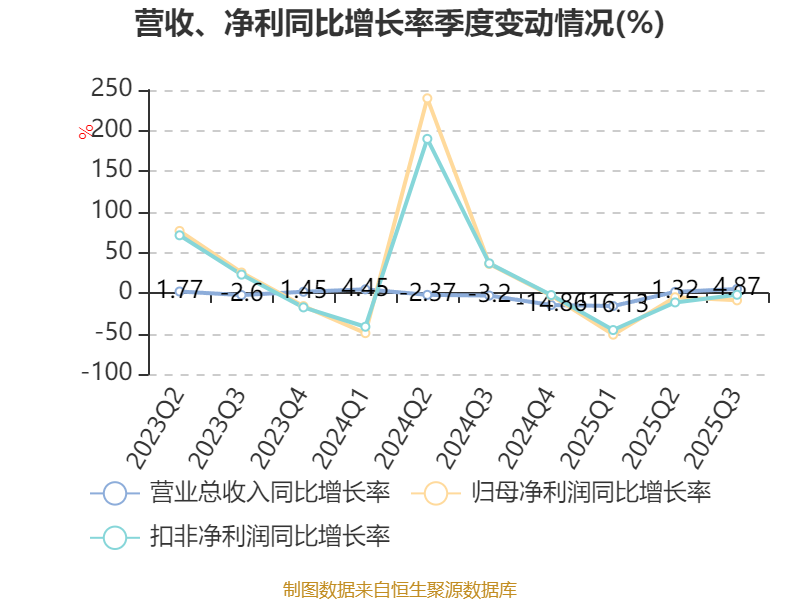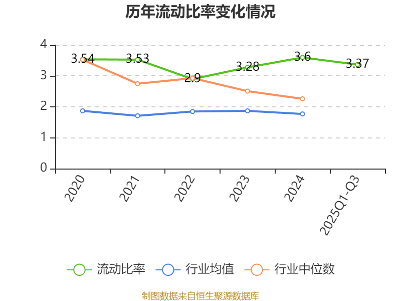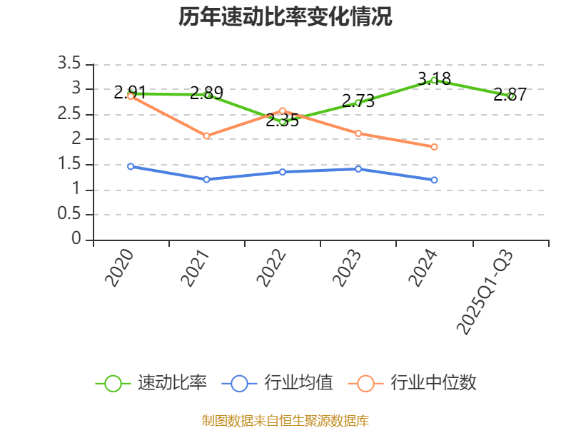 2025年前三季度,公司流动比率为3.37,速动比率为2.87。