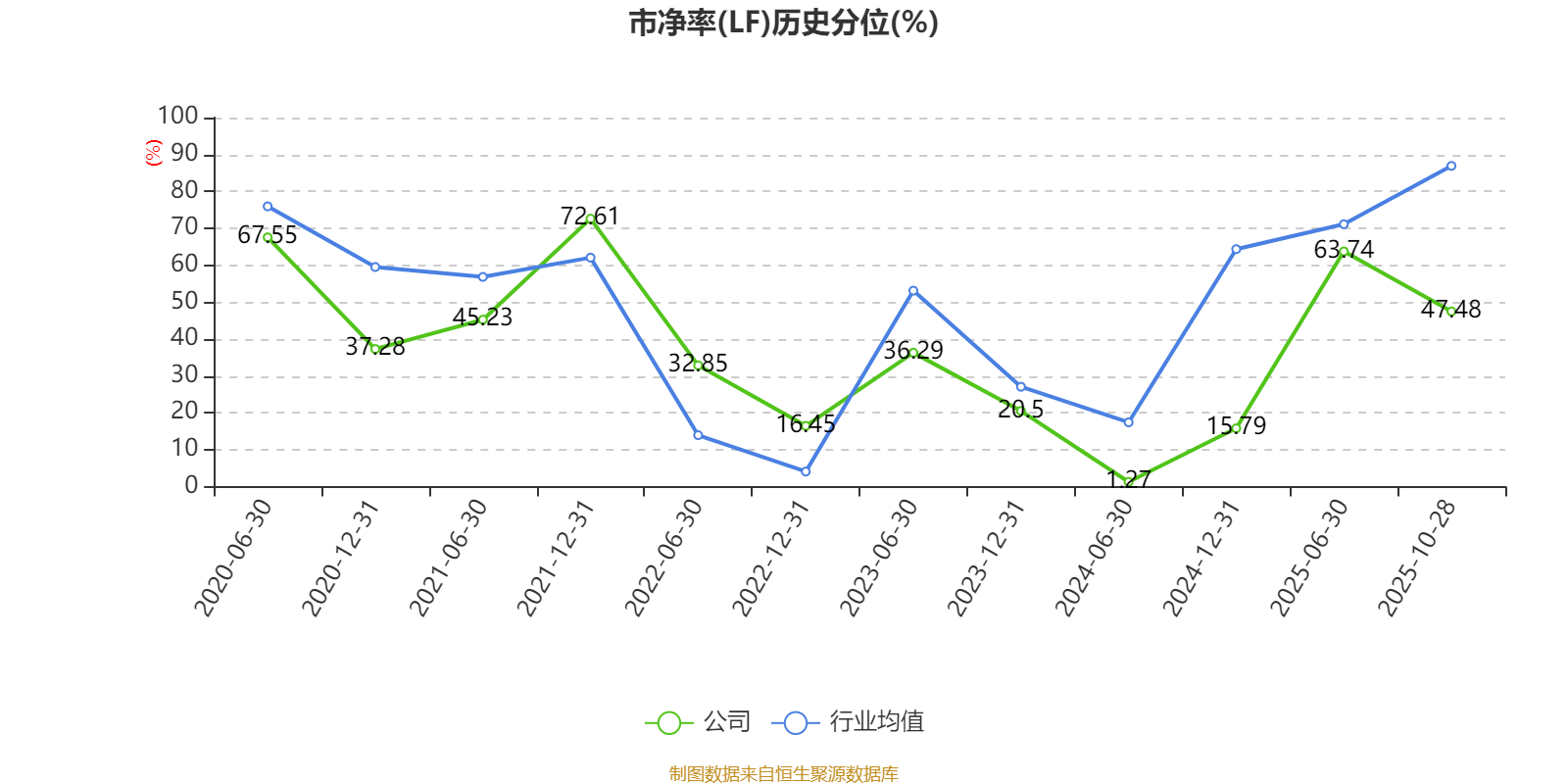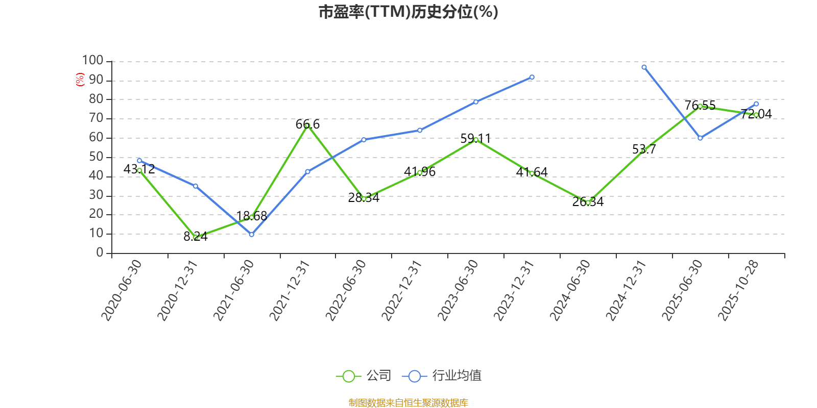 市盈率、市净率为负时,不显示当期分位数,会导致折线图中断。