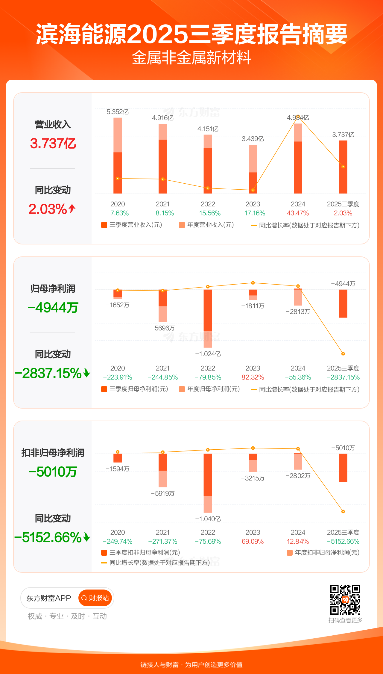 图解财报:滨海能源前三季归母净利润-4943.70万元,上年同期180.61万元