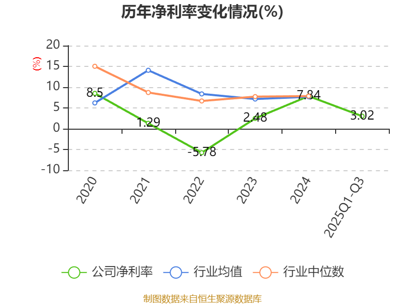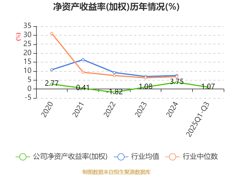 盈利能力方面, 2025年前三季度公司加权平均净资产收益率为1.07%,同比下降2.82个百分点。公司2025年前三季度投入资本回报率为0.22%,较上年同期下降2.47个百分点。