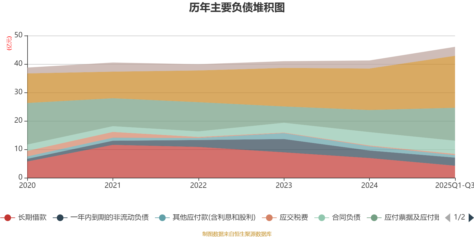 负债重大变化方面,截至2025年三季度末,公司应付票据及应付账款较上年末增加48.8%,占公司总资产比重上升3.98个百分点;长期借款较上年末减少39.23%,占公司总资产比重下降3.73个百分点;短期借款较上年末增加25.55%,占公司总资产比重上升3.41个百分点;其他应付款(含利息和股利)较上年末减少41.12%,占公司总资产比重下降0.84个百分点。
