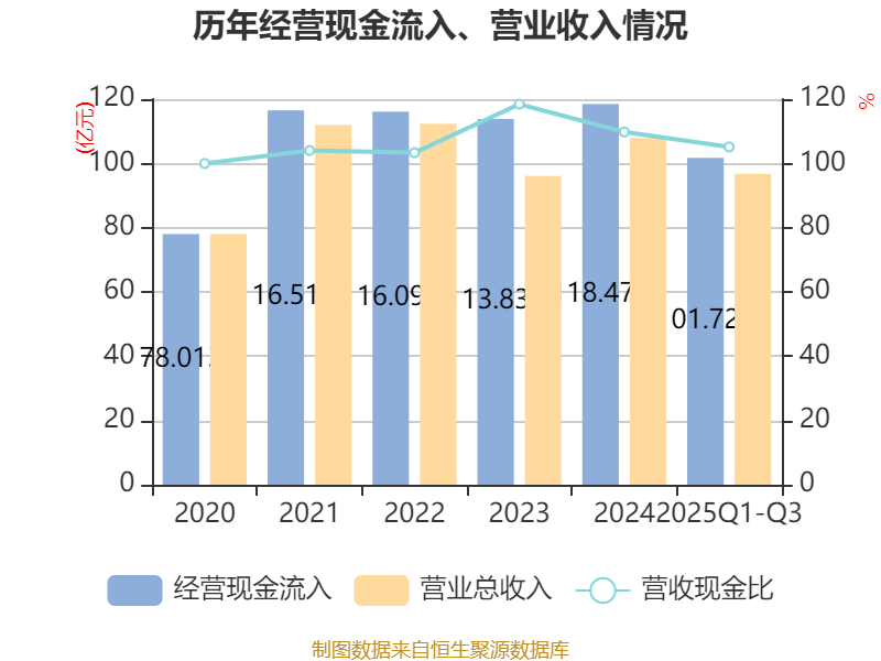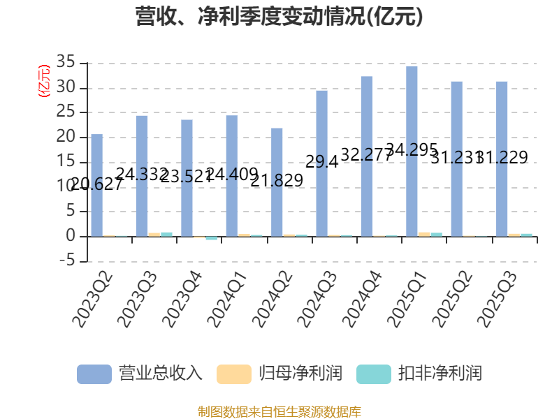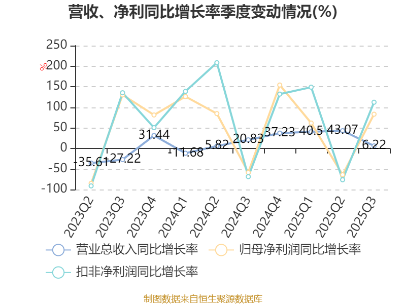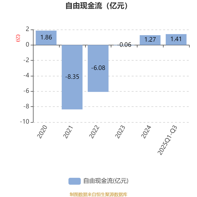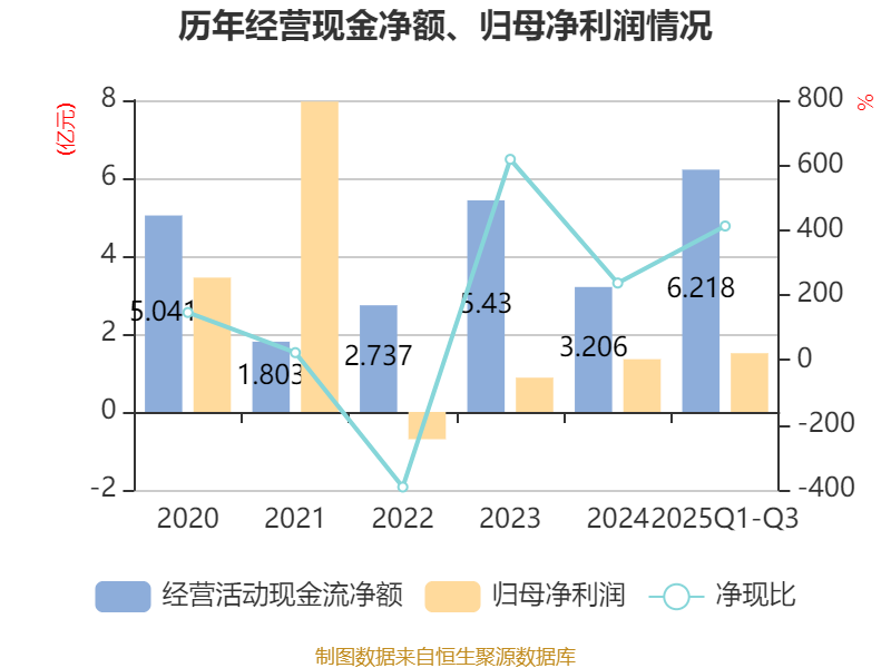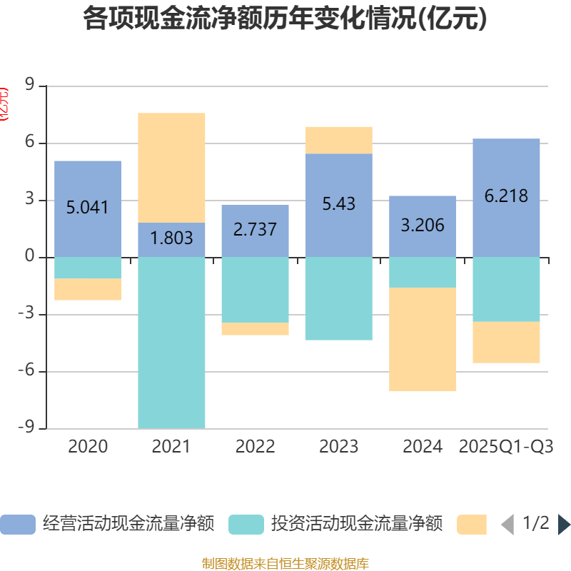 2025年前三季度,公司经营活动现金流净额为6.22亿元,同比增长40.31%;筹资活动现金流净额-2.17亿元,同比增加7534.17万元;投资活动现金流净额-3.41亿元,上年同期为-1.69亿元。