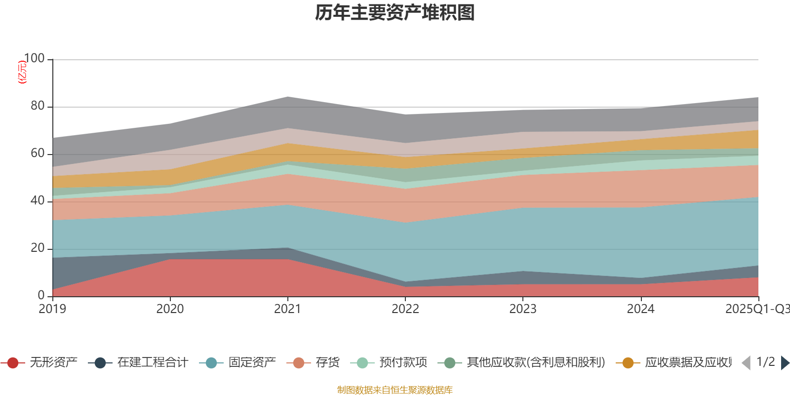 资产重大变化方面,截至2025年三季度末,公司存货较上年末减少14%,占公司总资产比重下降3.72个百分点;应收票据及应收账款较上年末增加65.37%,占公司总资产比重上升3.31个百分点;无形资产较上年末增加57.64%,占公司总资产比重上升3.12个百分点;固定资产较上年末减少2.89%,占公司总资产比重下降3.11个百分点。