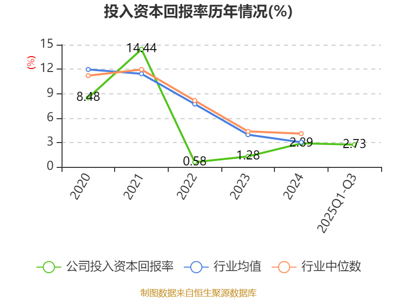 盈利能力方面, 2025年前三季度公司加权平均净资产收益率为3.99%,同比上升0.73个百分点。公司2025年前三季度投入资本回报率为2.73%,较上年同期上升0.09个百分点。