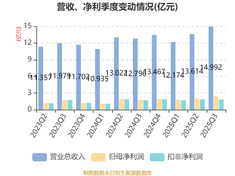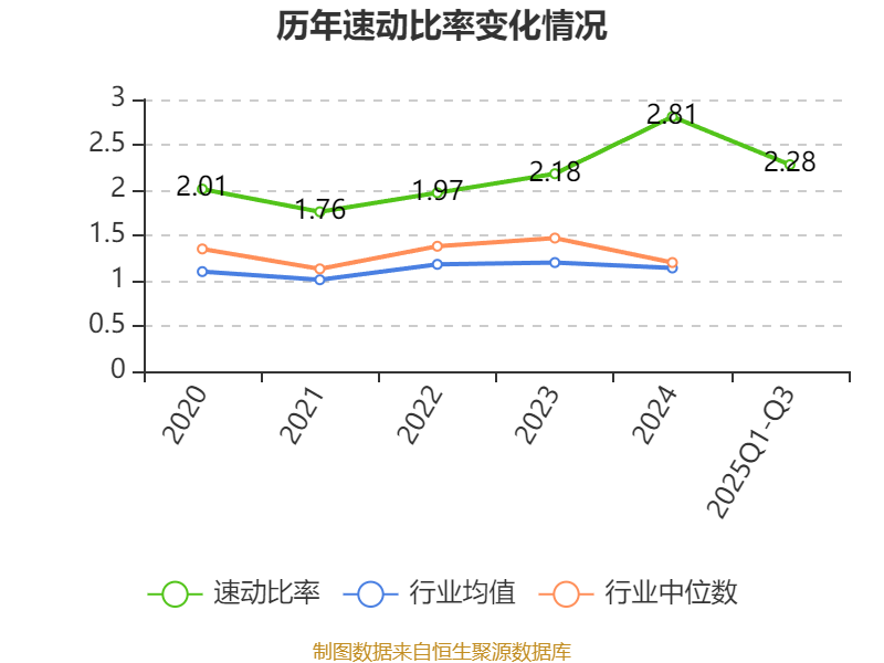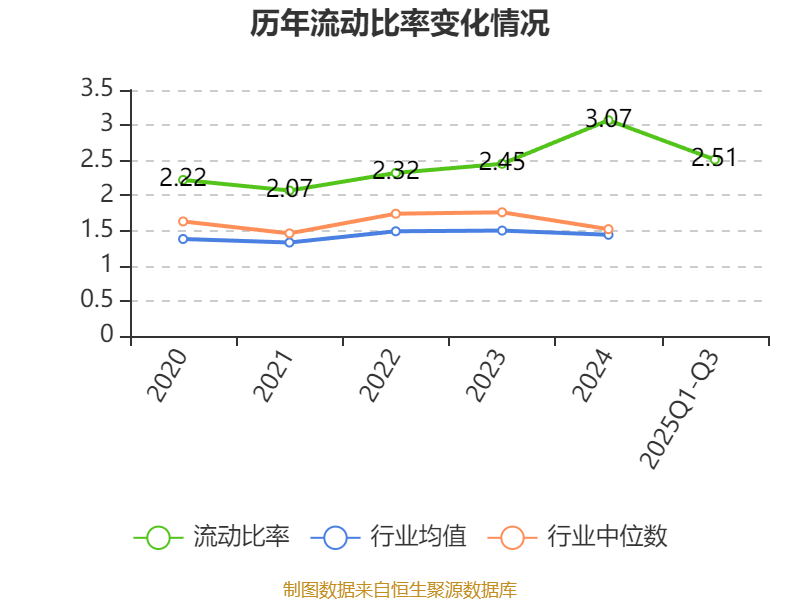 2025年前三季度,公司流动比率为2.51,速动比率为2.28。