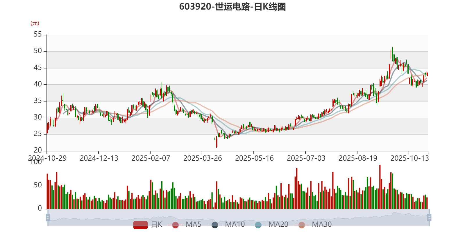 以10月28日收盘价计算,世运电路目前市盈率(TTM)约为38.39倍,市净率(LF)约4.7倍,市销率(TTM)约5.78倍。