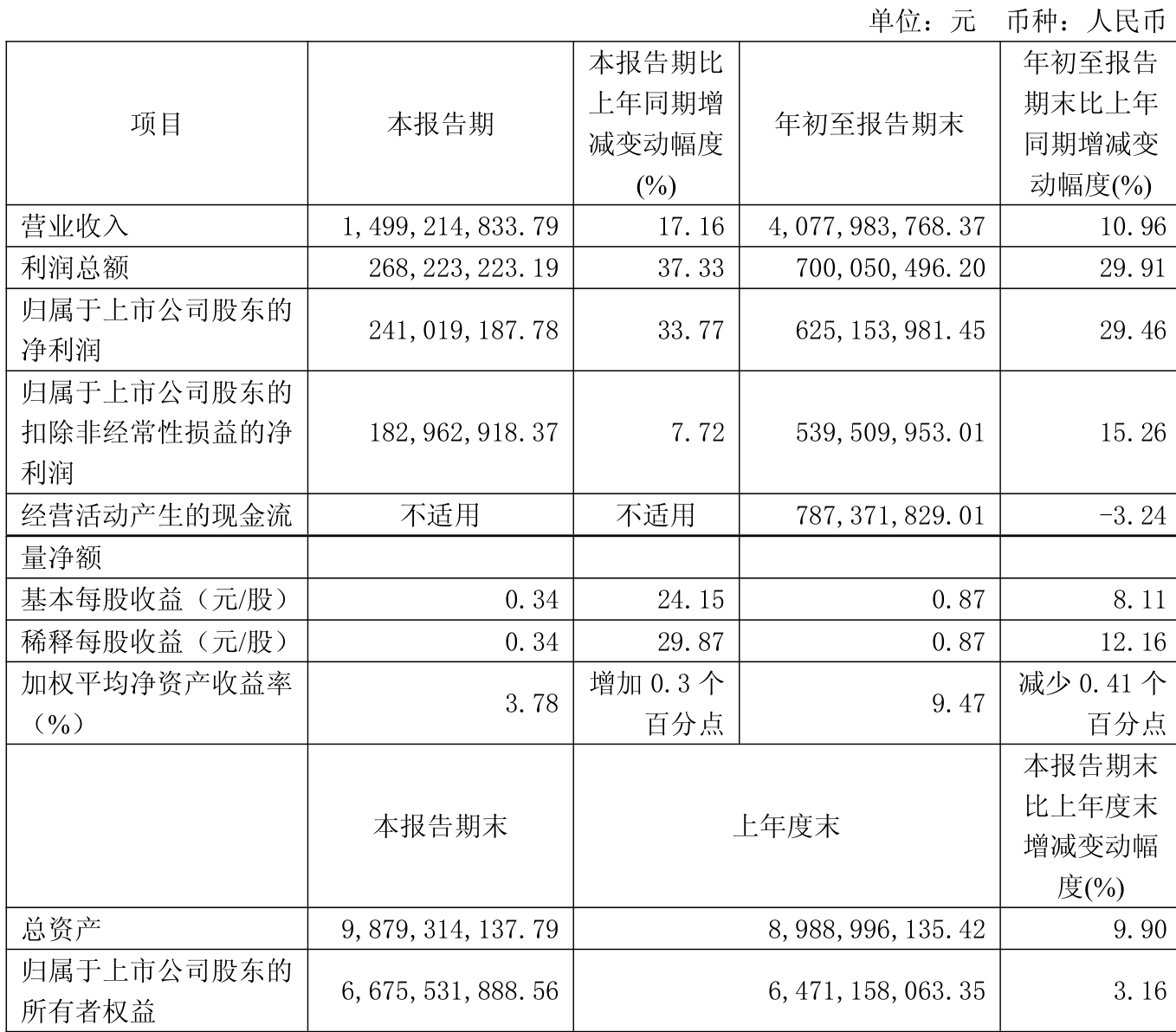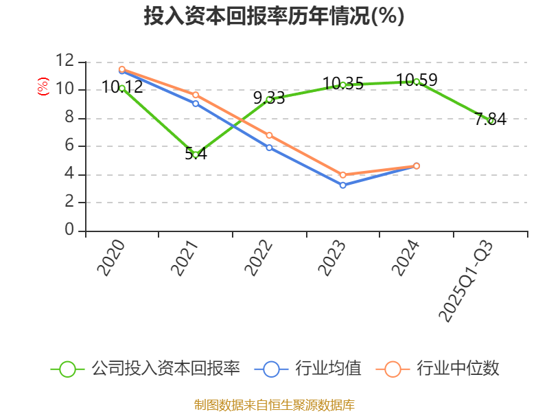 盈利能力方面, 2025年前三季度公司加权平均净资产收益率为9.47%,同比下降0.41个百分点。公司2025年前三季度投入资本回报率为7.84%,较上年同期下降0.16个百分点。